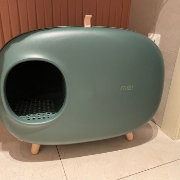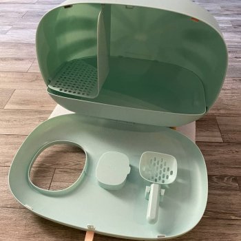 The light blue color of this litter box matches perfectly with my room decor. Plus, it's super easy to maintain.
